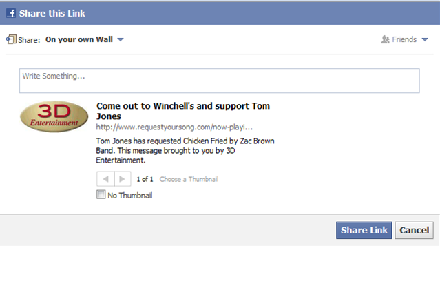 Request Your Song already gives your performers the chance to Post their requests to their wall, or tweet about what they are singing, but as a Professional Request Your Song subscriber you get your company’s logo instead of the default Mikey image.